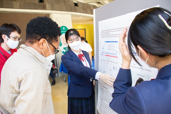 Many of the research themes chosen in this year's contest were aimed towards achieving the sustainable development goals (SDGs), demonstrating the high level of awareness on social issues among high school students. Such research themes included the development of health-conscious local products, ideas for a barrier-free society, and projects that address environmental issues. Most of the teams took on the additional challenge of presenting their work in English.