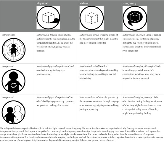 To understand what might help account for this variety in experience, and given its frequent mention in their data and much of the media in the early stages of the pandemic, the researchers used the physical hug as an example and examined its components. "Any given experience can be broken down into its elements. It is at the intersection of these mediating elements that a unique experience emerges," Mark James explained. They used a framework called the Mixed Reality Interaction Matrix (MRIM), a three-by-three grid that serves as a means of examining the experience of the hug (or any other experience) by breaking it down into its contributing physical, virtual and imaginary elements. "This doesn't imply that all the components contribute equally. In fact, having such a map allows you to start thinking about which components are more relevant and contribute more to the experience. It's an attempt to grasp the elements of a subjective experience," according to James.