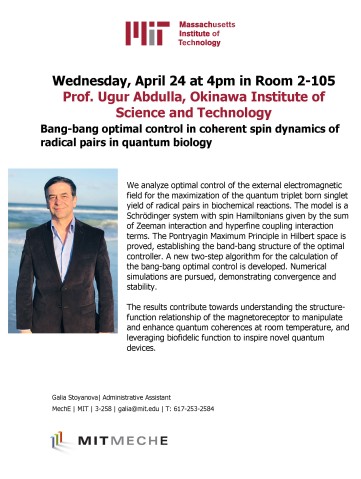 OIST Prof. Ugur Abdulla lecture at MIT on April 24, 2024