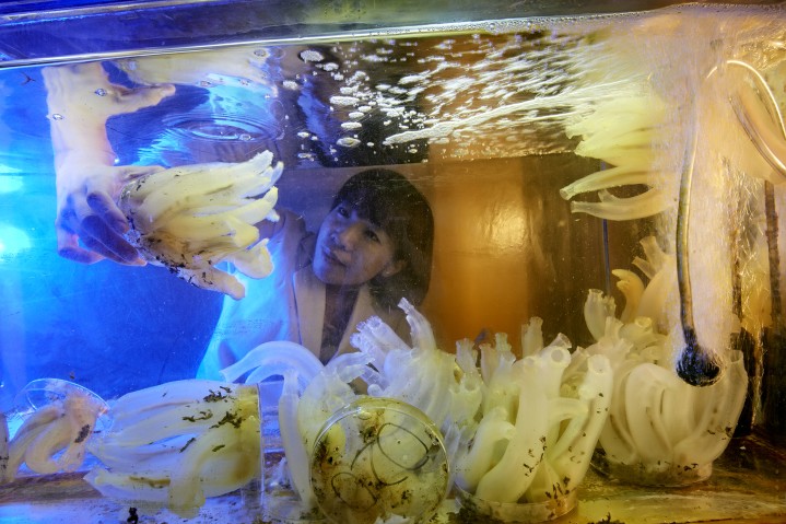 The ascidians are hermaphrodites. They have a uterine tube, a seminal duct and their intestine running side by side.