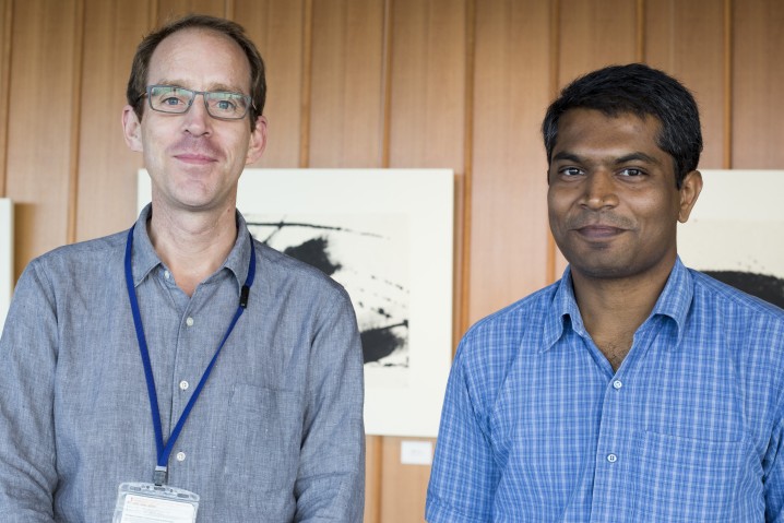 Dr. C. M. Chandrashekar and Professor Thomas Busch run simulations and carry out analytical studies to understand quantum particles in the Quantum Systems Unit at OIST.