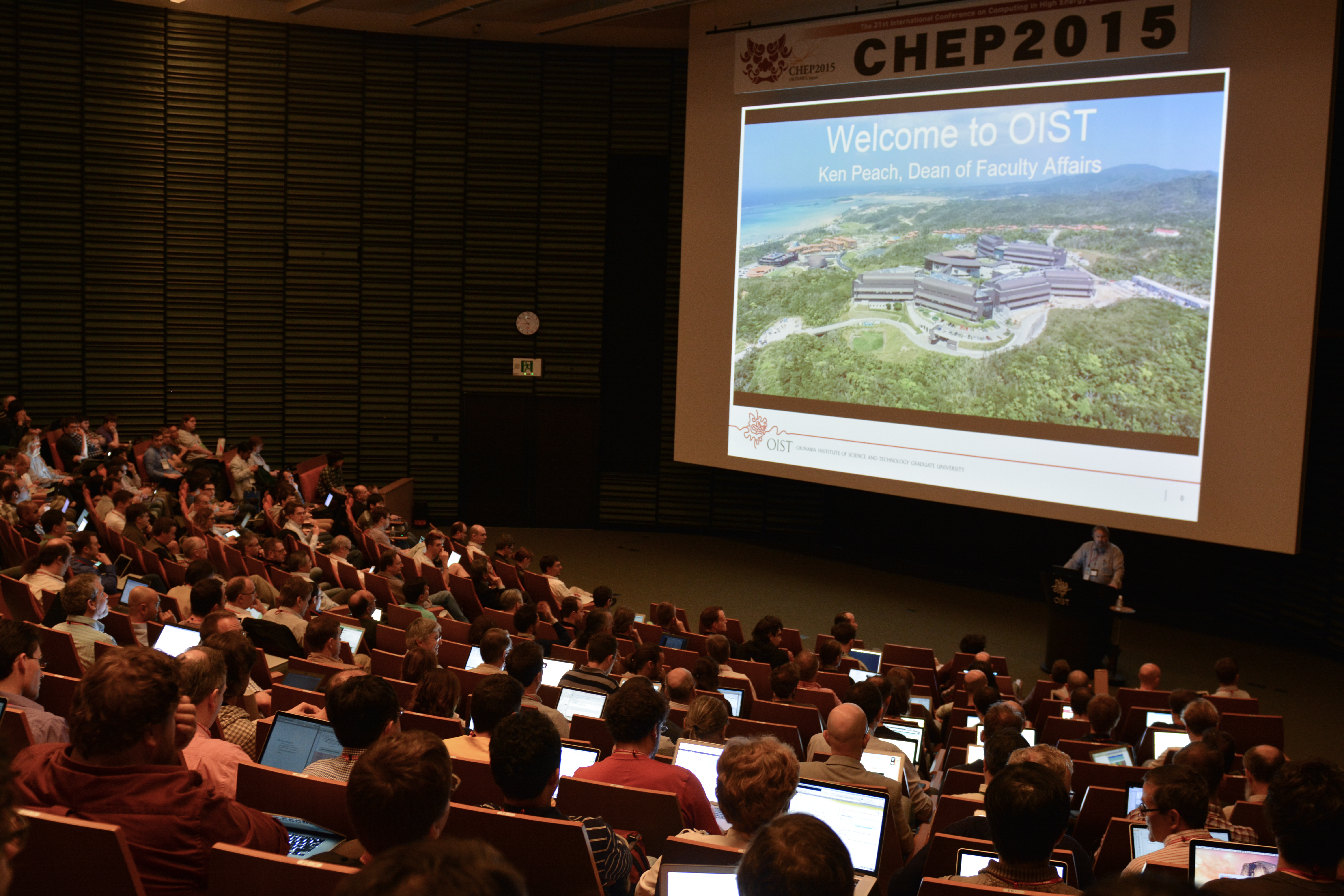 OIST Dean of Faculty Affairs Ken Peach welcomes participants to the 21st International Conference on Computing in High Energy Physics and Nuclear Physics (CHEP) at the Okinawa Institute of Science and Technology Graduate University (OIST).