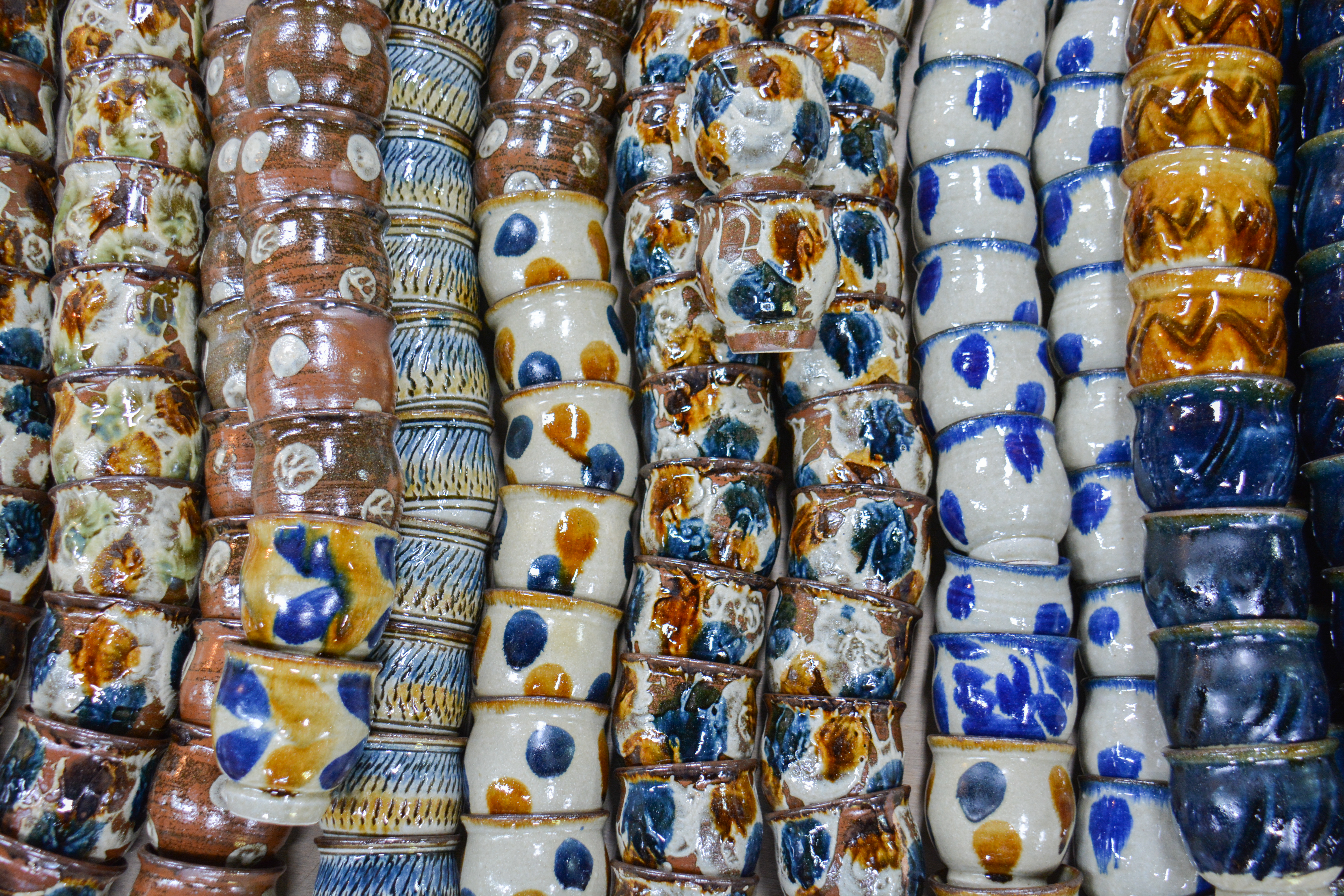 Thousands of pieces of colorful pottery are made during each firing. OIST researchers analyzed what components in the glazes give rise to the different blue, brown, black, white, green and zaffer shades.