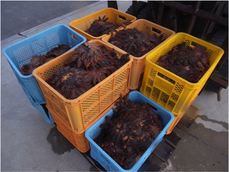 Crown-of-Thorns starfish collected off the Onna coast by Nakamura and fisherman in 2011.