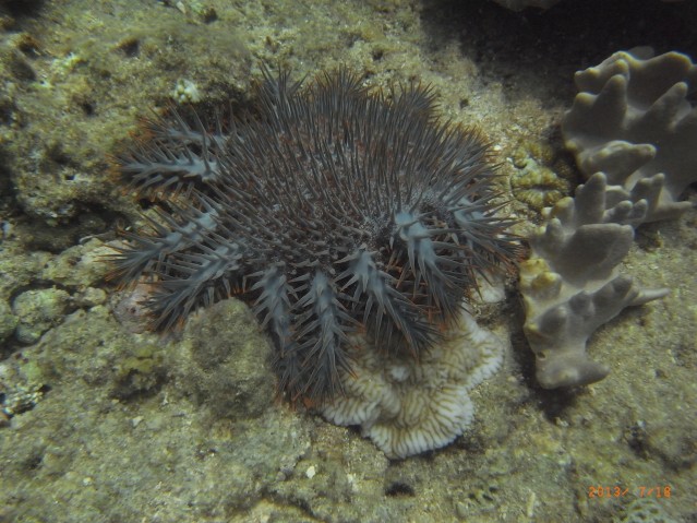 Crown-of-Thorns starfish in the waters off of Onna village.