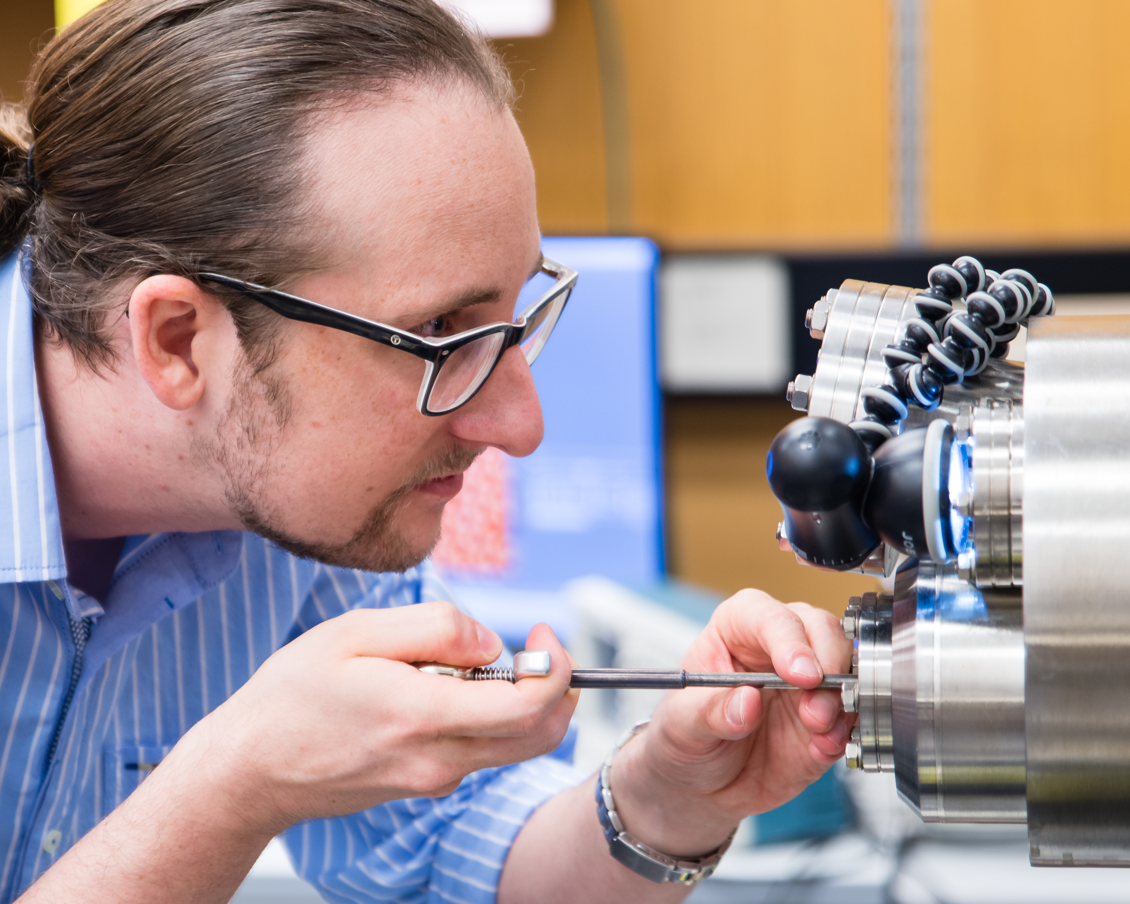 Dr Robin Ohmann, first author of the paper, transfers a sample into the scanning tunneling microscope.