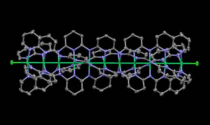 The structure of the longest EMAC reported in the literature, confirmed by X-ray crystallography. It contains 11 nickel atoms arranged in a linear chain.