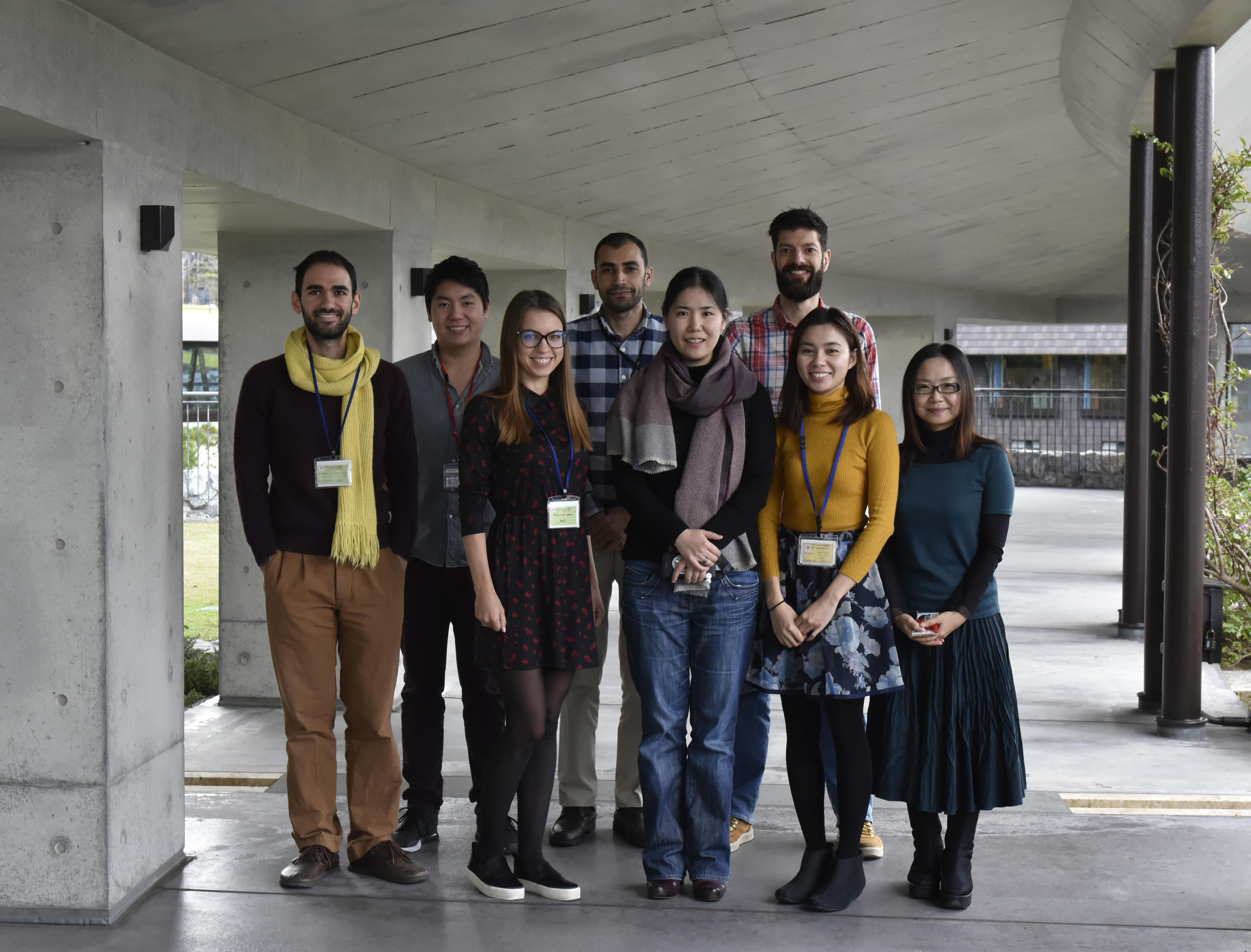 Fukunaga’s unit studies inhibitory neurons. (From left to right, back row: Cary Zhang, Taha Soliman, Sander Lindeman, and in the front row: Salvatore Lacava, Anzhelika Koldaeva, Izumi Fukunaga, Aliya Adefuin, Saeko Hedo.)
