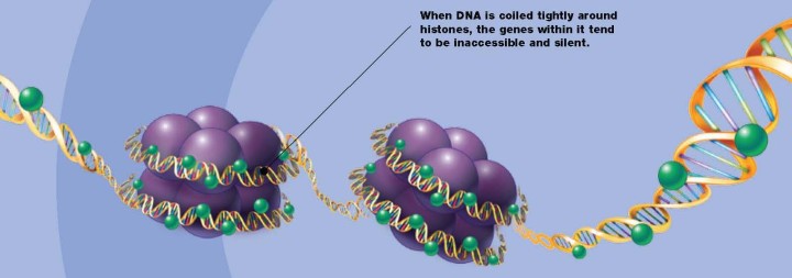 DNA is wound onto spools to make it more compact, so that it will fit inside chromosomes. Image courtesy of the National Institute of Neurological Disorders and Stroke.