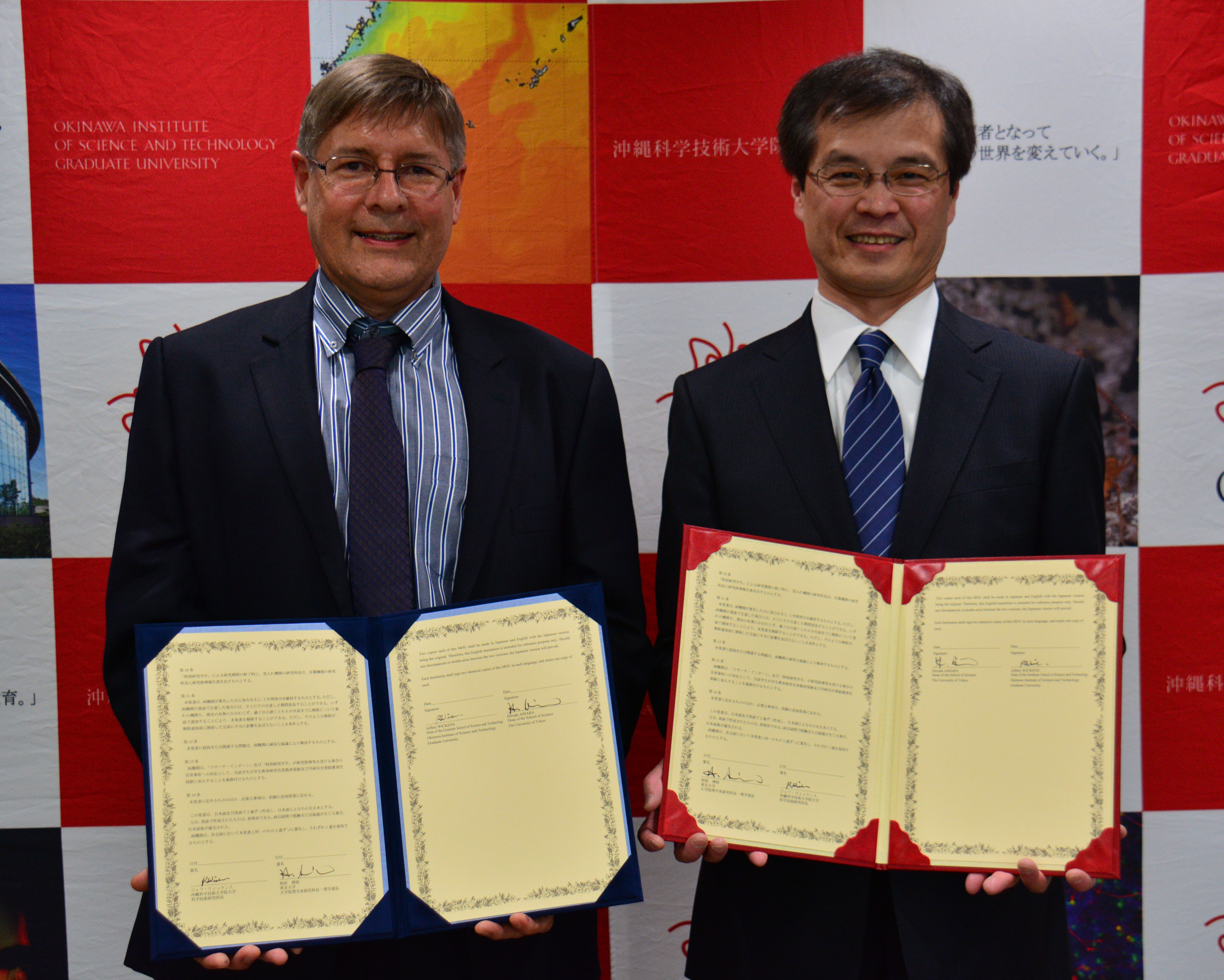 OIST Dean Jeff Wickens and Prof. Hiroaki Aihara, Dean of the School of Science, the University of Tokyo