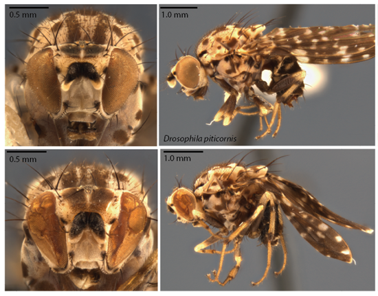Comparison of one of the fly specimens used in the study before and after DNA extraction. There is minimal damage to the eye and the wings, but the specimen is mostly unharmed from the new extraction technique.