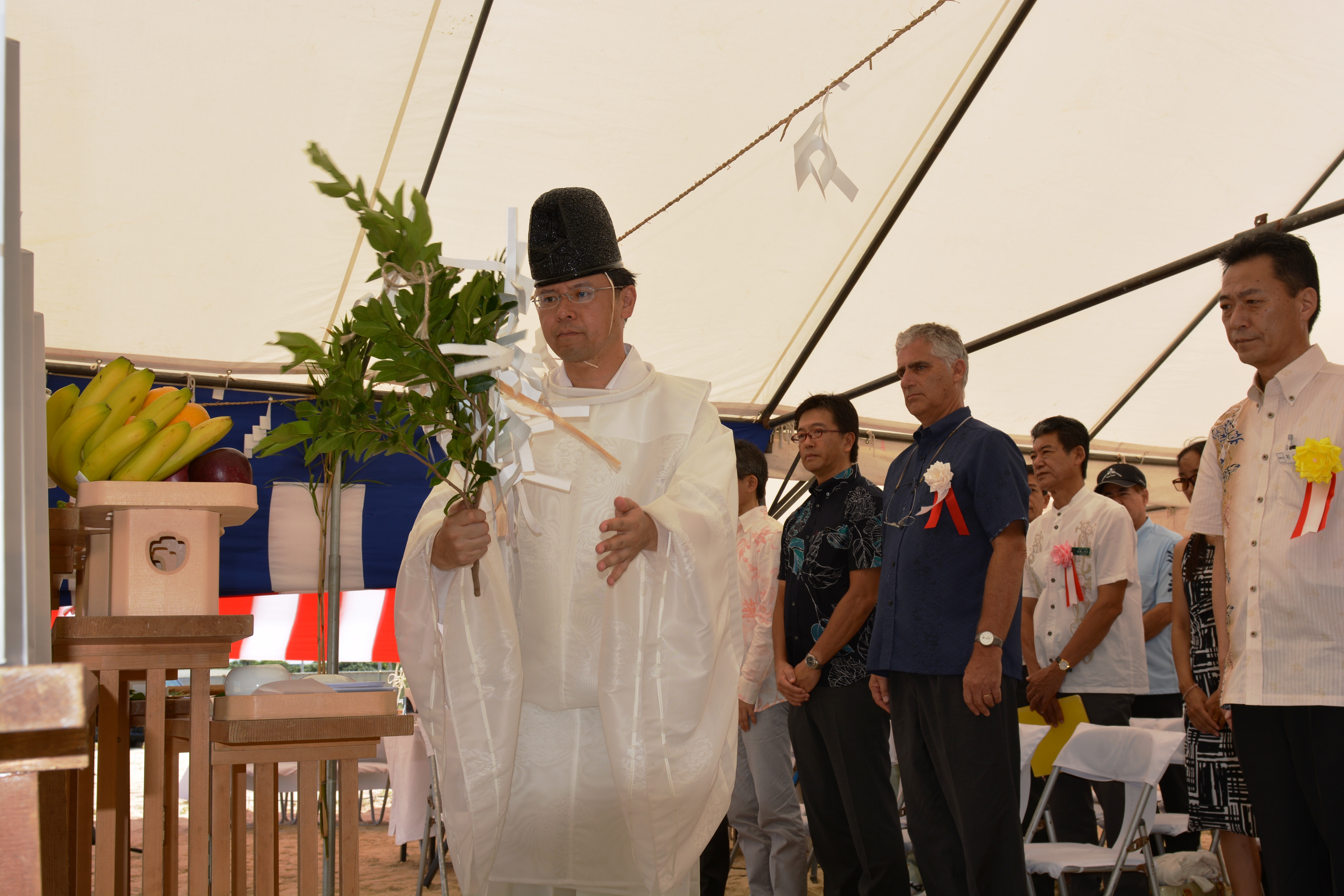 The Negi (Shinto Priest) conducts the Groundbreaking Ceremony.