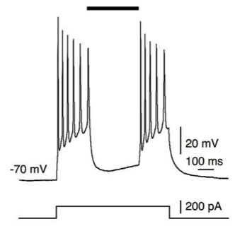 The image shows a nerve cell firing impulses being silenced when the light is turn on (indicated by the horizontal bar).