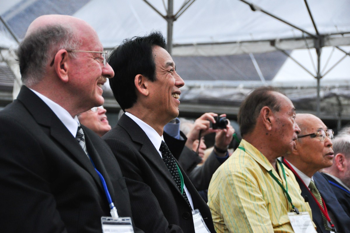 OIST Inauguration Ceremony, November 19th 2011. From left, OIST President Dr. Jonathan Dorfan, the then Minister of State for Okinawa and Northern Territories Affairs Mr. Tatsuo Kawabata, and the then Okinawa Governor Hirokazu Nakaima.