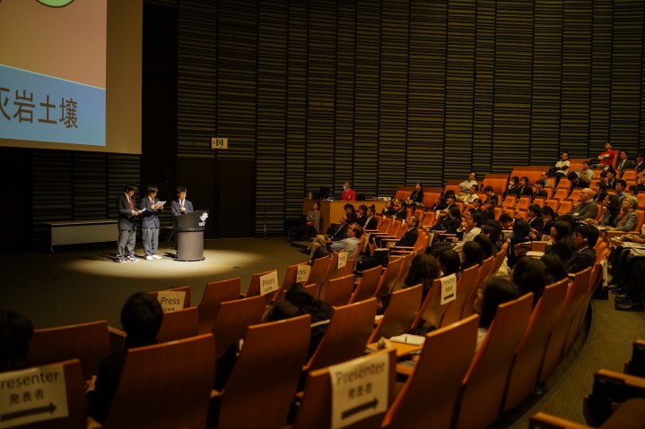 Competitors present their project to judges and participants.