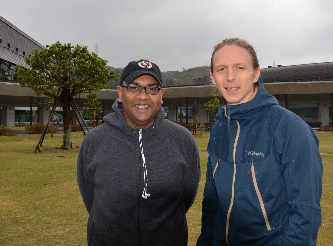 Prof. Mahesh Bandi and graduate student, Märt Toots on the OIST campus