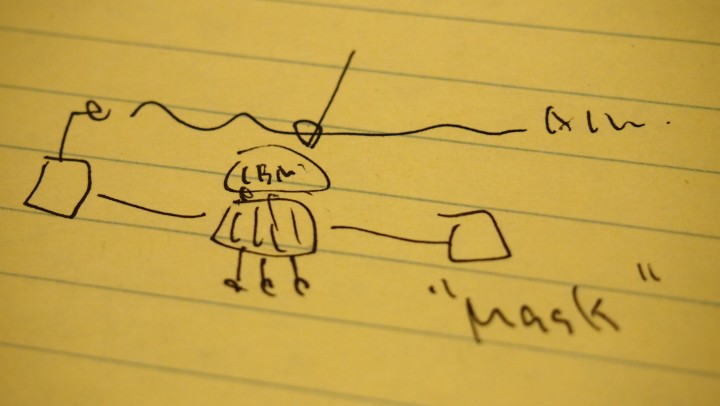 Prof. Saze's hand-drawn diagram of IBM2 function explaining how IBM2 masks the effect of TEs to facilitate mRNA transcription.