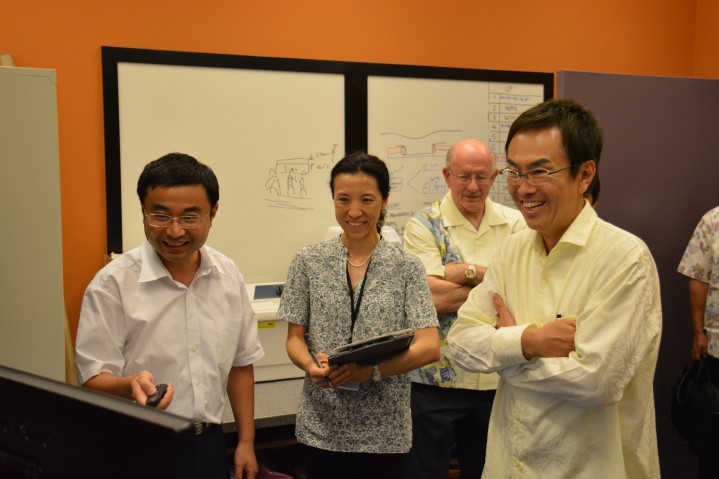 Prof. Yabing Qi introducing his research to Minister Ishihara (June 29, 2013)