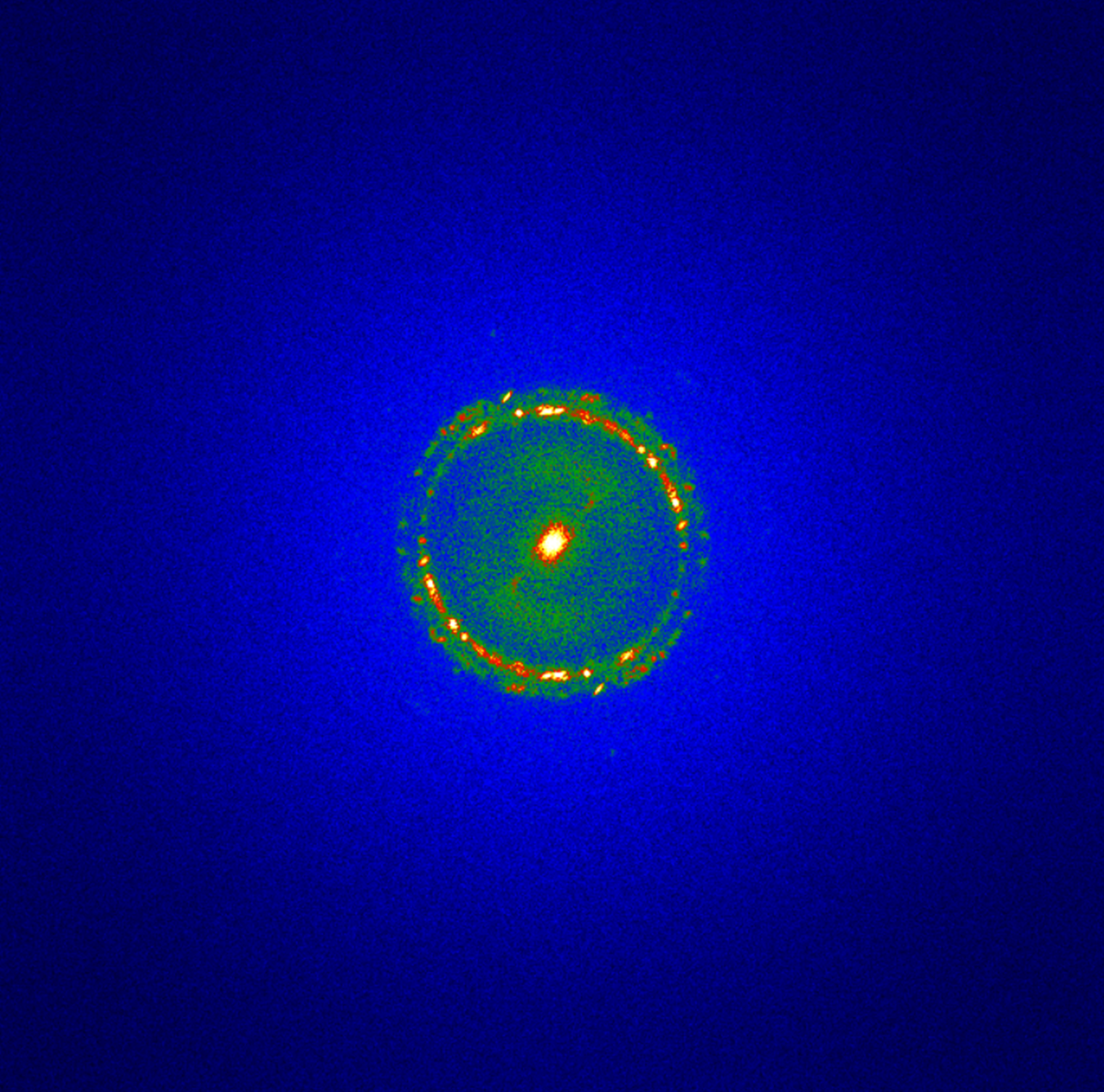 Even in dense water vapor, the presence of “rings” and “spots” shows detail in the gold on an atomic scale.