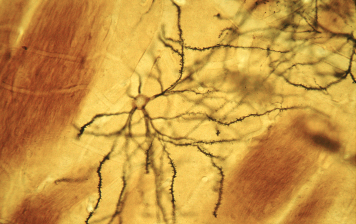 The dendrite branches of spiny neurons are littered with spines, or receptor sites, for neurotransmitters, including dopamine. Spiny neurons play a crucial role in initiating and regulating movements of the body, limbs, and eyes by receiving signals from neurons in other parts of the brain that produce dopamine. The Brain Mechanism for Behaviour Unit is studying these cells in order to understand their role in Parkinson’s disease. Gordon Arbuthnott, head of the Unit, had previously found that half of these spines are lost from the dendrites when dopamine is removed, as is the case in Parkinson’s.