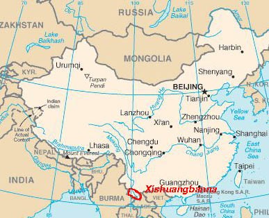Xishuangbanna is located in the southern tip of Yunnan Province, China.