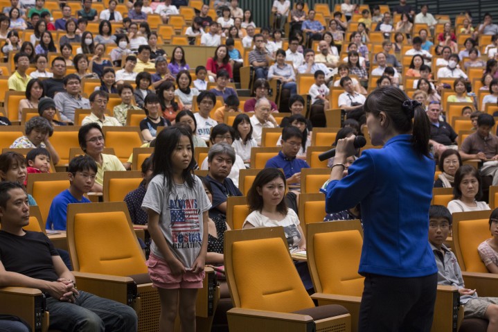 Japanese astronaut Naoko Yamazaki answers questions from the audience after delivering a lecture at OIST.