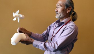 Prof. Shintake’s WEC-units have been carefully designed, taking inspiration from nature: the blade design and materials are inspired by dolphin fins and the flexible posts resemble flower stems. The units are built to withstand forces from breaking waves. They are also safe for sea-creatures, with the blades rotating at a carefully calculated speed that allows them to avoid the blades. One of the principal features of the WEC-units is that the generating turbines are designed to be located at the mean sea level to harness the wave energy most effectively.