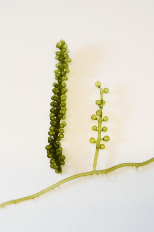 Tiny green balls branch off the central stem of the umi-budo plant, and when chewed, these teeny orbs burst in a pop of salty goodness. In Japanese, this sensational texture is known as “puchi puchi,” an onomatopoeia mimicking the sound of puny pops. The Marine Genomics Unit was curious as to how a plant made up of just one cell could grow into such a fantastical shape, thus granting sea grapes their singular texture.
