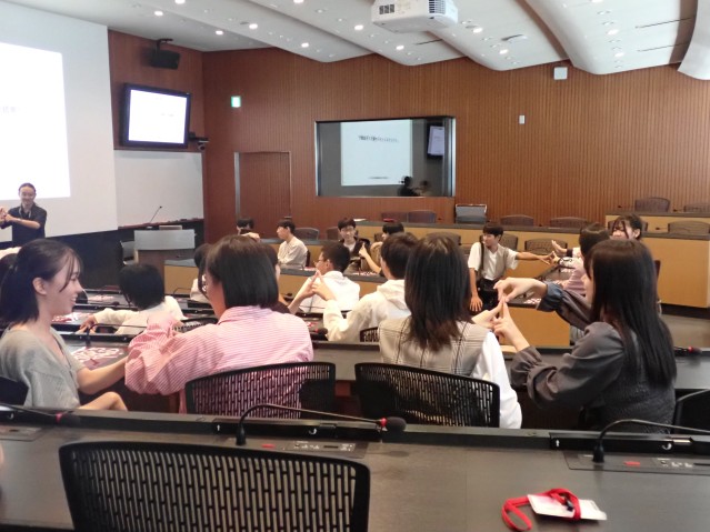 Kazuma Takada, a PhD student from the Froese Unit (Embodied Cognitive Science Unit) gave a lecture on research and his career path. The lecture included hands-on activities that allowed the students to experience illusions, and he explained the “Self” Mechanisms are Diversified by Computer.