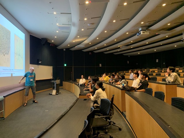 On October 28, 2024, 18 students from KOSEN-KMITL visited OIST and took part in a campus tour. They had the opportunity to observe ongoing research activities during a visit to the Froese Unit (Embodied Cognitive Science Unit). The group also attended a lecture by Professor Bernd Kuhn from the Kuhn Unit (Optical Neuroimaging Unit), where they learned about neuroimaging technology.