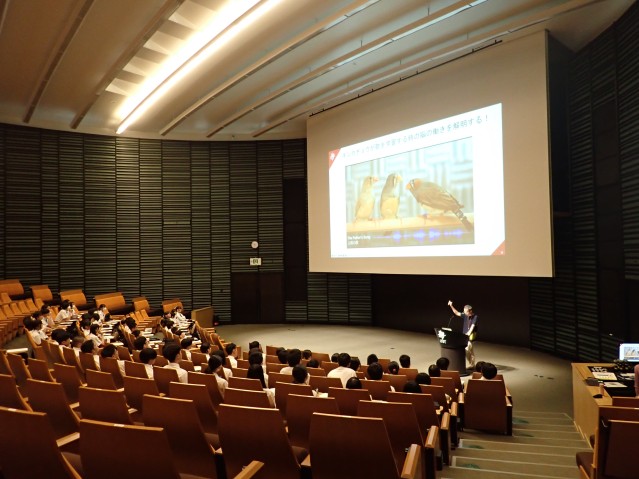 Eighty-one students from Okinawa Prefectural Nago High School visited OIST. Yuichi Morohashi, a Research Unit Technician from the Yazaki-Sugiyama Unit (Neuronal Mechanism for Critical Period Unit) gave a lecture about his career and research.