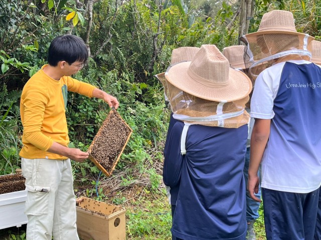 The students of Unna Junior High School Science Club installed 12,000 honeybees into the new hives that they built.