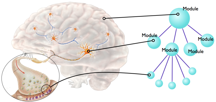 An aggregate of modules is treated as a module at one level above in a multilevel model.