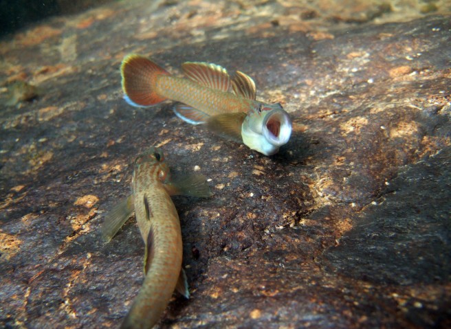 A male and female goby, Rhinogobius brunneus, found in Okinawa.