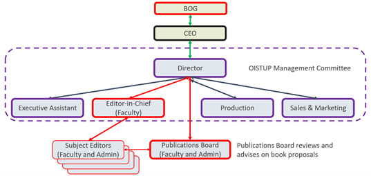The Director of OISTUP is appointed by the CEO. Positions on the OISTUP Management Committee and the Publications Board are proposed by the Director of OISTUP and appointed by the CEO.