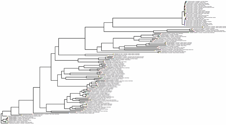 A phylogenetic tree of bacterial genomes recovered from 24 strains and 7 species of of Azolla ferns.