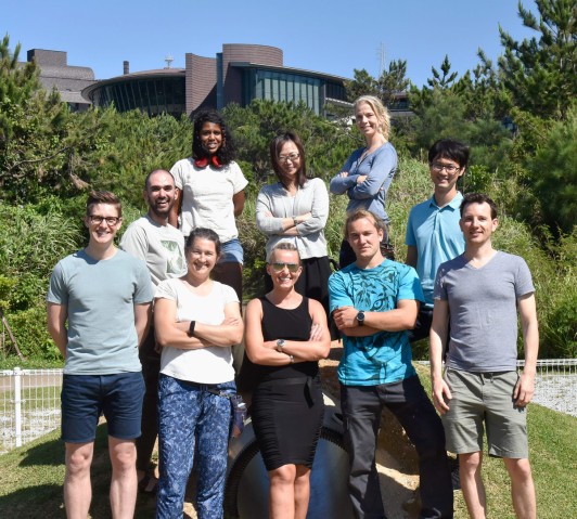 nRIM unit at the OIST CDC grounds. Top row (from left to right): Lakshmipriya Swaminathan, Saeko Hedo, yoe; Middle row, Salvatore Lacava, Guo Da; Front row: Rasmus Ingvarsson, Aysen Gurkan Ozer, Bogna Ignatowska-Jankowska, Kevin Dorgans, Alex Kuck.