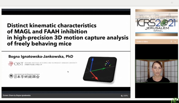 - Place: C700, Lab 3 and Zoom - Oral presentation at 31st International Cannabinoid Research Society (ICRS) Symposium on Cannabinoids: Ignatowska-Jankowska B, Gurkan-Ozer A., Kuck A, Niphakis M, Ogasawara D, Cravatt BF, Uusisaari MY. Distinct kinematic characteristics of MAGL and FAAH inhibition in high precision 3D motion capture analysis of freely behaving mice. Jerusalem, Israel, 21-24 June 2021