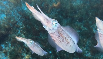 Two species of cestodes have been found in the guts of wild-caught oval squids.