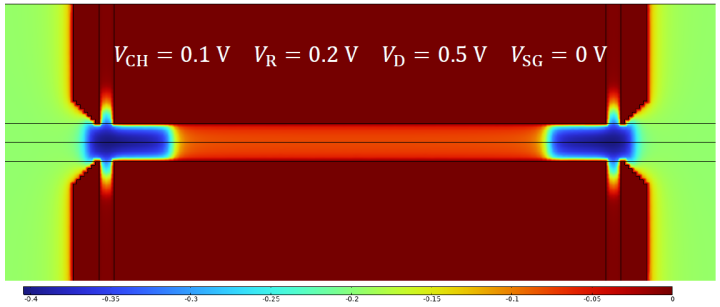 Figure 2: FEM simulation of the electrostatic potential in microchannel device.