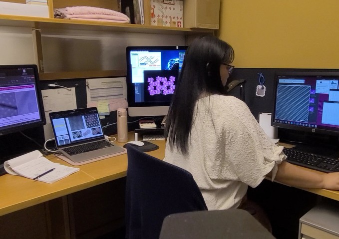 Since June 2023, I have been responsible for demonstration tests using a new cryo-electron microscope at the Shintake Unit. I handle a variety of samples, including organic-inorganic hybrid crystals in materials, pharmaceuticals, and protein crystals.