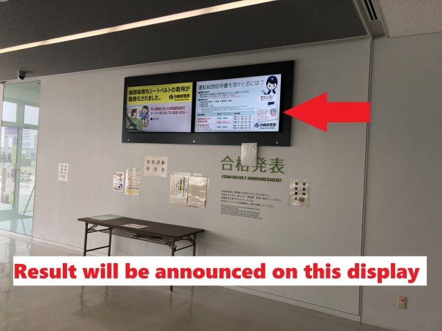 - The result of the exam will be announced on the screen in the waiting room about 30 minutes after the exam *your registration# for the exam will be displayed if passed