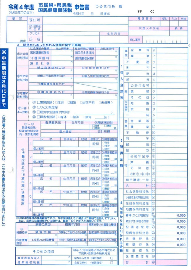 Show the following line to the officer to indicate that you are there to get assistance in filling out the form: 「村・県民税の申告書の記入と提出に来ました」