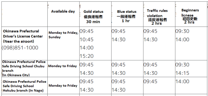 - Okinawa Prefectural Driver's License Center (near the airport)