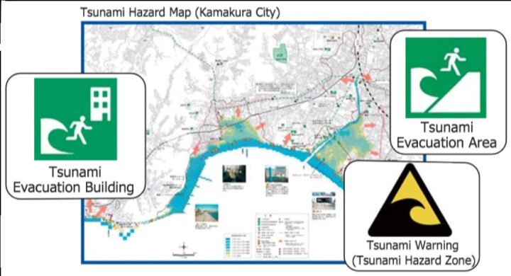 If Major Tsunami Warning (Ou Tsunami Keihou) is issued, follow the map below: