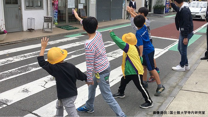 If you see Japanese children raising their hand or palm in the air around a pedestrian crossing, it means they intend to cross the crossing. Please prepare to stop.