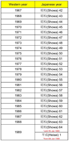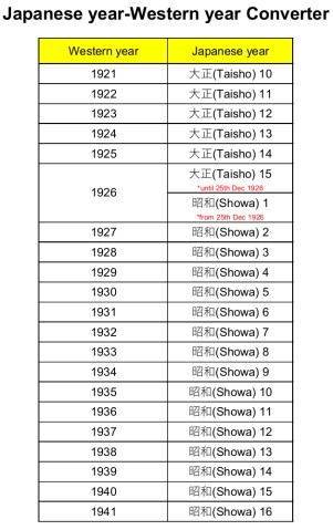 It may be confusing when it comes to converting your birthday if you were born in the year that an era was replaced by another because the change of an era can happen in the middle of the year. For example, Taisho era ended on 25th December 1926 due to the death of Emperor Taisho who was succeeded by His Majesty's son, Emperor Showa whose era started on 26th December 1926. Hence, someone who was born on 14th November 1926 would say he was born in the 15th year of Taisho, while someone who was born on 30th December 1926 would say he was born in the 1st year of Showa despite that they were born in the same year in the Western calendar.